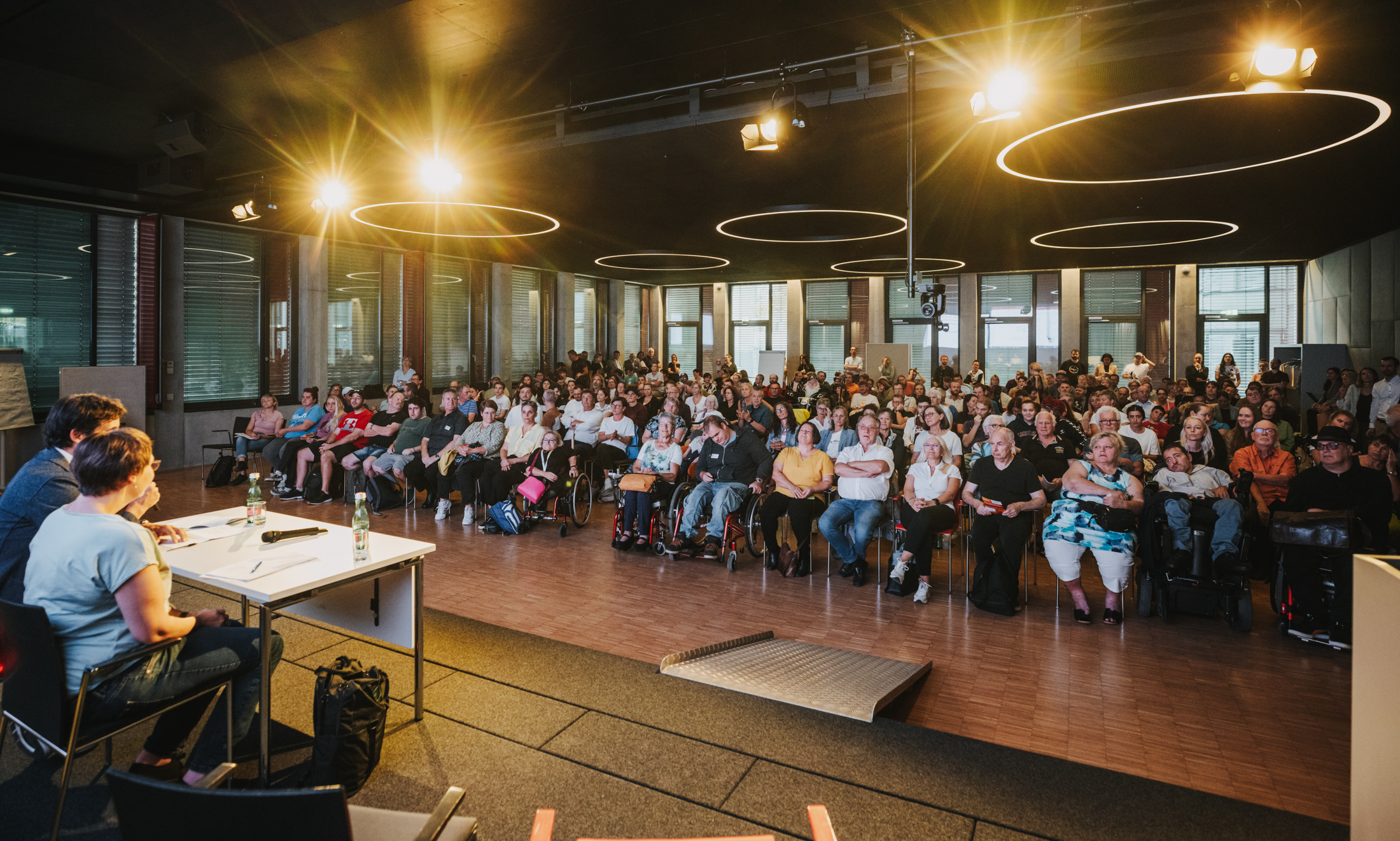 Zum Thema Inklusion und Gemeindeverantwortung haben sich zahlreiche Menschen im Saal der AK Feldkirch versammelt – darunter: Menschen mit Behinderungen, verantwortliche Politikerinnen sowie Expertinnen und viele Interessierte.