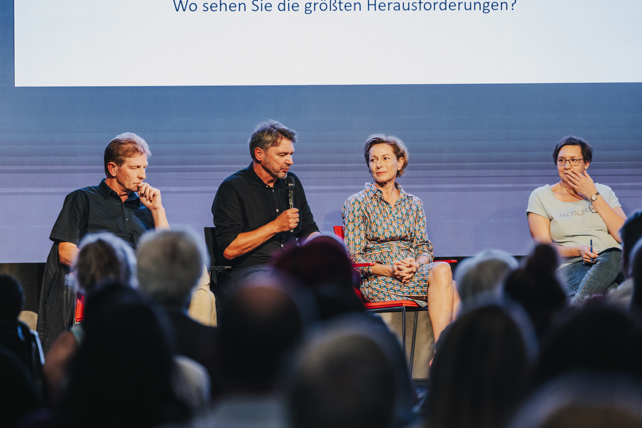 Auf dem Podium diskutierten die zuständige Landesrätin Martina Rüscher, die Bürgermeister Andreas Haid (Gemeinde Mittelberg) Kurt Fischer (Lustenau), Bernhard Kleber (Andelsbuch) und Gemeinderätin Karin Reith (Rankweil).
